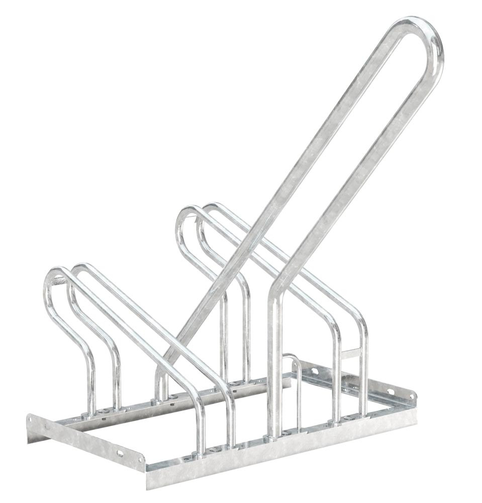 · Hergestellt aus Stahl · Feuerverzinkt · Zum Einstellen mit Umkippschutz · Integrierte Stahl-Rundösen sorgen für einen verbesserten Diebstahlschutz · Die mit rotem Kunststoff ummantelten Anlehnbügeln schützen die Räder vor Beschädigungen und Umdrücken · Für Reifenbreiten bis 55 mm · Radabstand 500 mm · Einstellwinkel 90° · Für Reihenverbindung geeignet · Winkel zur Bodenmontage sind im Lieferumfang enthalten