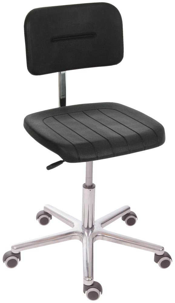 Arbeitsstuhl, ESD, Aluminium Fußkreuz + Feder, PU schwarz, Höhe 500-690 mm, Rollen