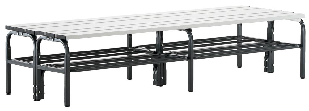 Doppelseitige Garderobenbank, mit Schuhrost, Stahl/Alu, TxH 700x450 mm, Länge 2000 mm, RAL 7016