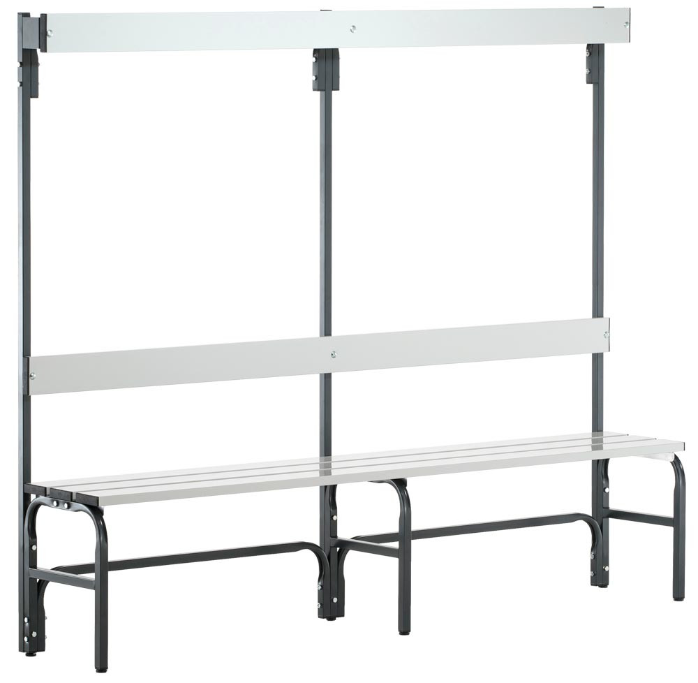 Doppelseitige Garderobenbank, ohne Schuhrost, Stahl/Alu, TxH 700x450 mm, Länge 1015 mm, RAL 7016 E849109