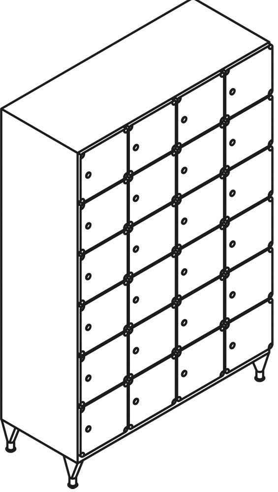 Fächerschrank, 4x6 Fächer, Abt. B 300 mm, Selbstbelüftungskonzept, BxTxH 1200x525x1980 mm, RAL 7035
