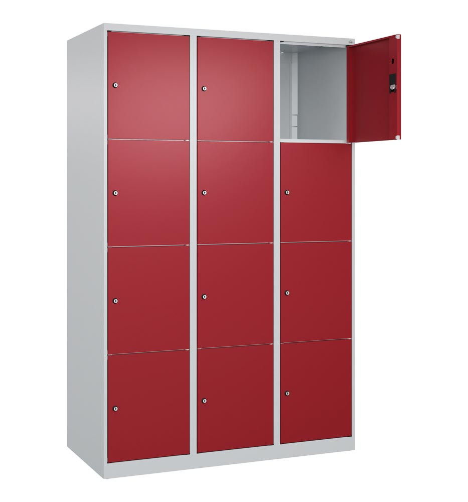 Fächerschrank, BxTxH 1200x500x1850 mm, 3x4 Fächer, Abt.B 400 mm, bodenstehend, Schloss, glatte Türen, Farbwahl