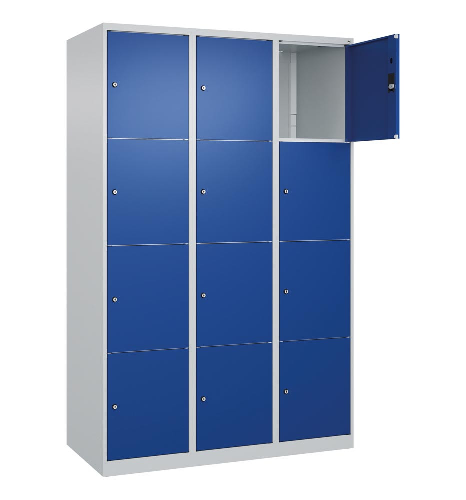 Fächerschrank, BxTxH 300x500x1850 mm, 1x4 Fächer, Abt.B 300 mm, bodenstehend, Schloss, glatte Türen, RAL 7035/5010 E6479267