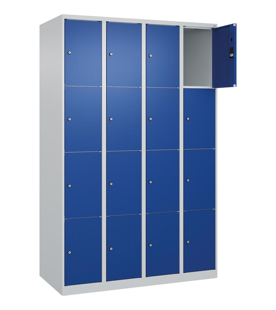 Fächerschrank, BxTxH 300x500x1850 mm, 1x4 Fächer, Abt.B 300 mm, bodenstehend, Schloss, glatte Türen, RAL 7035/5010 E6479267