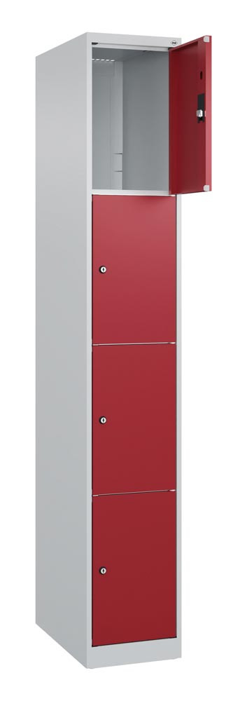 Fächerschrank, BxTxH 300x500x1850 mm, 1x4 Fächer, Abt.B 300 mm, bodenstehend, Schloss, glatte Türen, Farbwahl E6479268