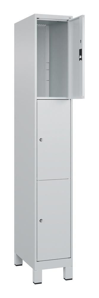Fächerschrank, BxTxH 300x500x1950 mm, 1x3 Fächer, Abt.B 300 mm, Füße, Schloss, glatte Türen, RAL 7035 E6479224