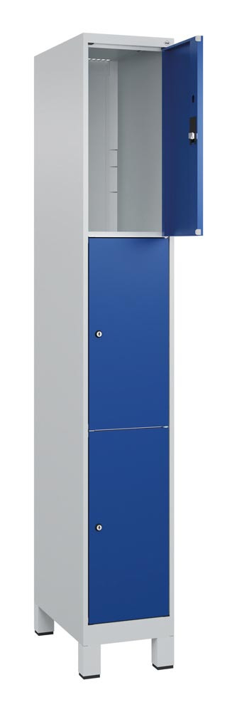 Fächerschrank, BxTxH 300x500x1950 mm, 1x3 Fächer, Abt.B 300 mm, Füße, Schloss, glatte Türen, RAL 7035/5010 E6479225