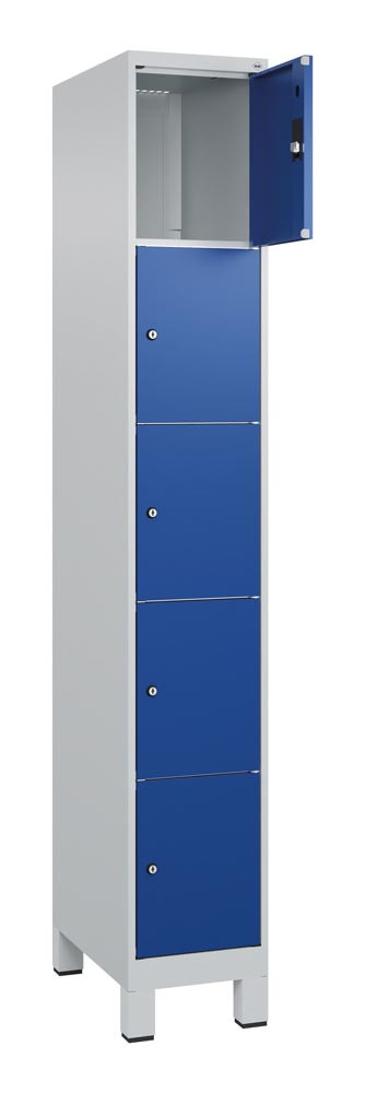 Fächerschrank, BxTxH 400x500x1950 mm, 1x5 Fächer, Abt.B 400 mm, Füße, Schloss, glatte Türen, RAL 7035/5010 E6479354