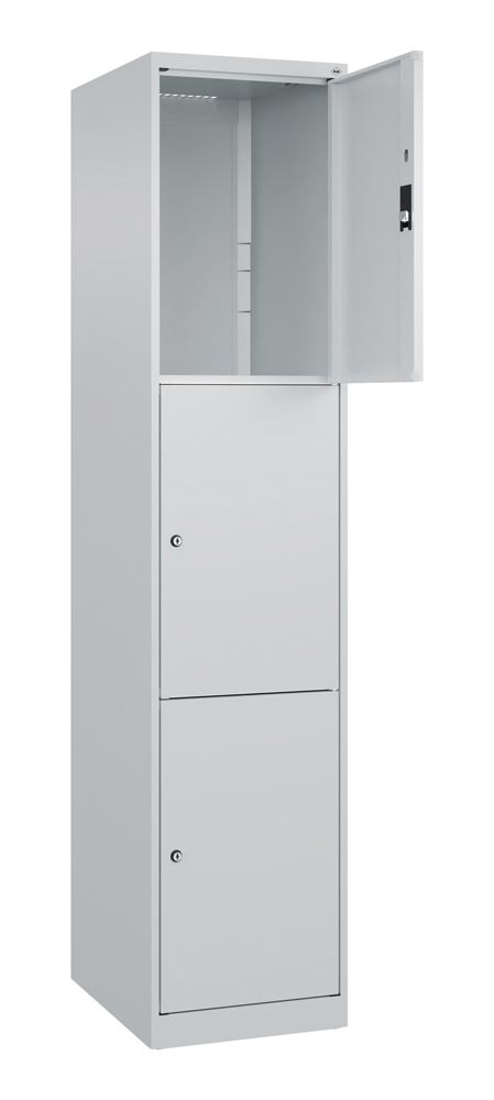 Fächerschrank, BxTxH 400x500x1850 mm, 1x3 Fächer, Abt.B 400 mm, bodenstehend, Schloss, glatte Türen, RAL 7035 E6479206