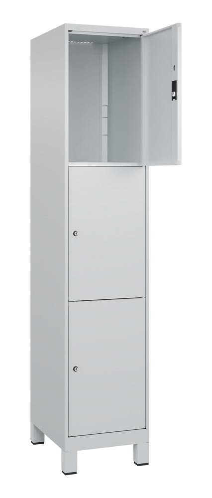 Fächerschrank, BxTxH 400x500x1950 mm, 1x3 Fächer, Abt.B 400 mm, Füße, Schloss, glatte Türen, RAL 7035 E6479227