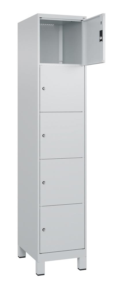 Fächerschrank, BxTxH 400x500x1950 mm, 1x5 Fächer, Abt.B 400 mm, Füße, Schloss, glatte Türen, RAL 7035 E6479353