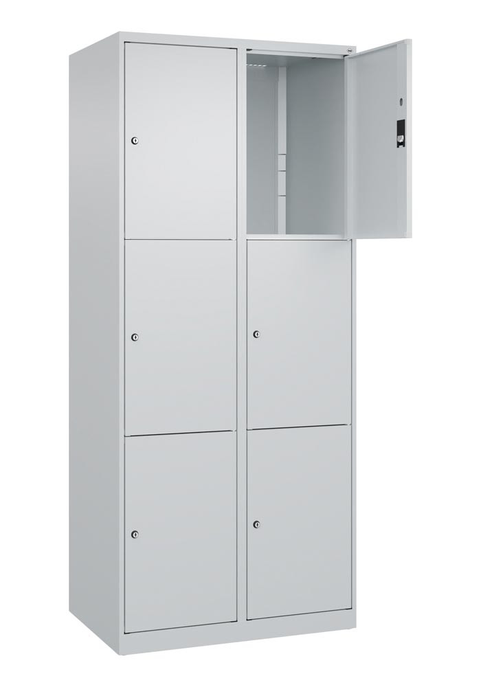 Fächerschrank, BxTxH 800x500x1850 mm, 2x3 Fächer, Abt.B 400 mm, bodenstehend, Schloss, glatte Türen, RAL 7035