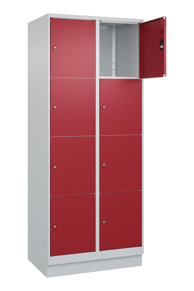 Fächerschrank, BxTxH 800x500x1950 mm, 2x4 Fächer, Abt.B 400 mm, Sockel, Schloss, glatte Türen, Farbwahl