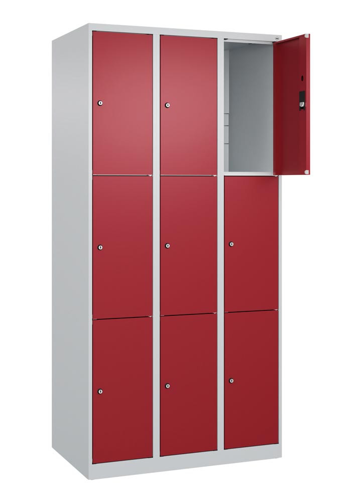Fächerschrank, BxTxH 900x500x1850 mm, 3x3 Fächer, Abt.B 300 mm, bodenstehend, Schloss, glatte Türen, Farbwahl