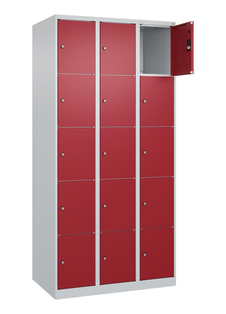 Fächerschrank, BxTxH 900x500x1850 mm, 3x5 Fächer, Abt.B 300 mm, bodenstehend, Schloss, glatte Türen, Farbwahl