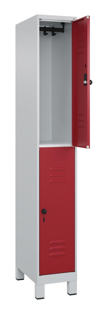 Fächerschrank, doppelstöckig, BxTxH 300x500x1950 mm, 1x2 Fächer, Abt.B 300 mm, Drehriegel, Füße, Farbwahl