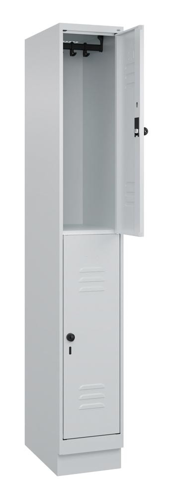 Fächerschrank, doppelstöckig, BxTxH 300x500x1950 mm, 1x2 Fächer, Abt.B 300 mm, Drehriegel, Sockel, Farbwahl E6476693