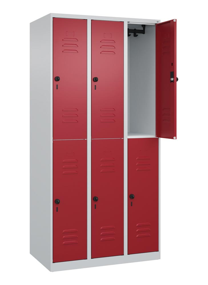 Fächerschrank, doppelstöckig, BxTxH 900x500x1850 mm, 3x2 Fächer, Abt.B 300 mm, Drehriegel, bodenstehend, Farbwahl