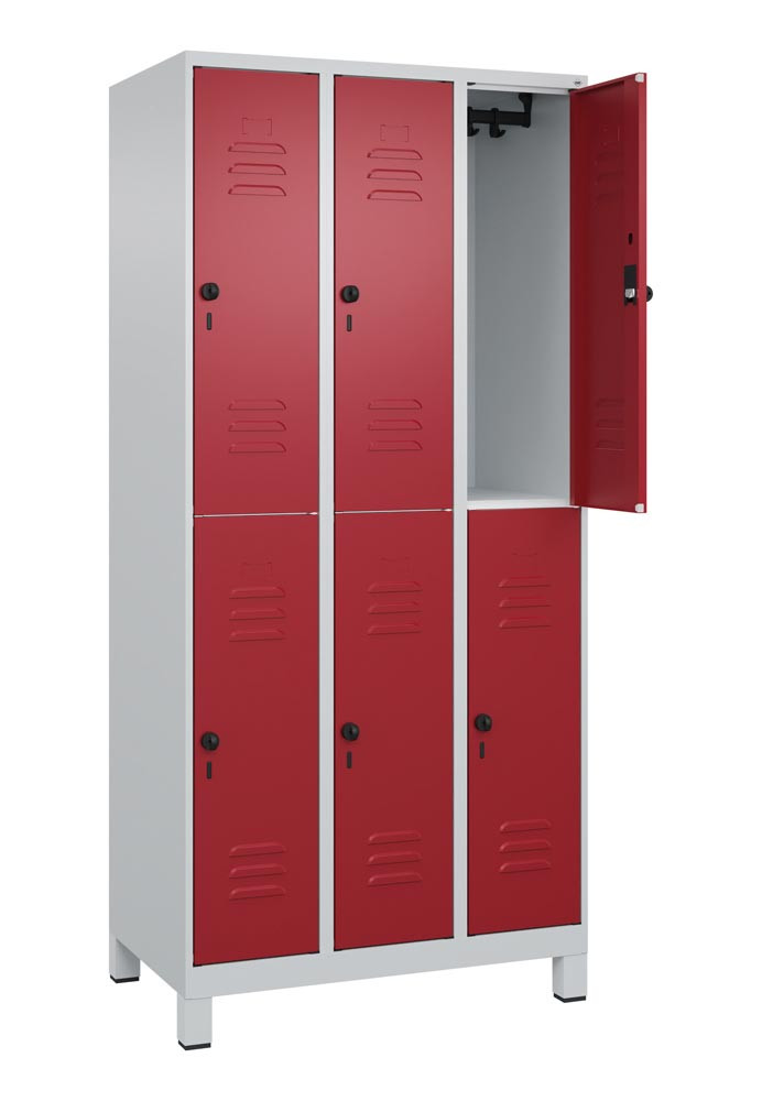 Fächerschrank, doppelstöckig, BxTxH 900x500x1950 mm, 3x2 Fächer, Abt.B 300 mm, Drehriegel, Füße, Farbwahl