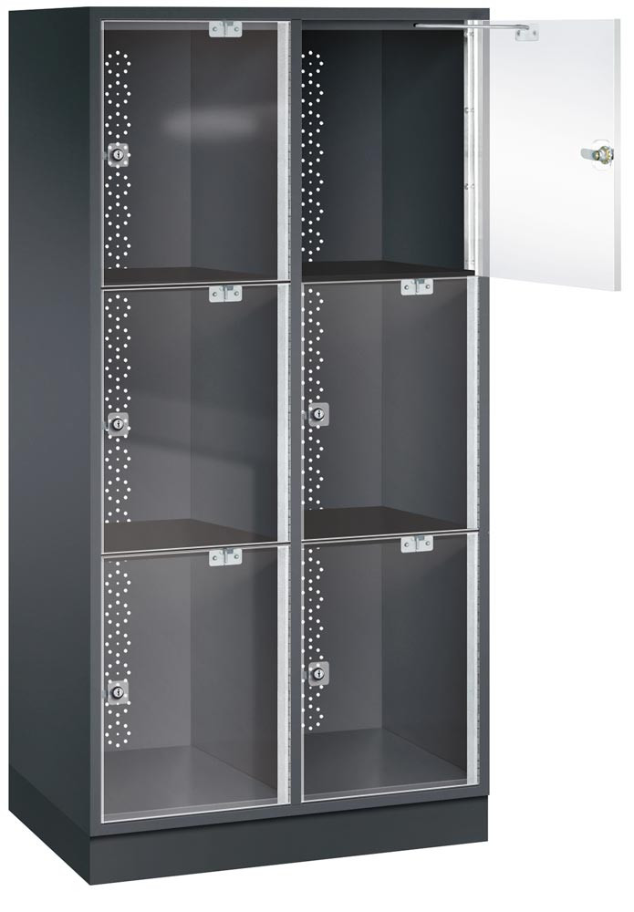 Fächerschrank mit Acrylglastüren, 2x3 Fächer 510 mm, BxTxH 820x500x1750 mm, Schloss, RAL 7021 E1988960
