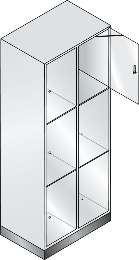 Fächerschrank mit Acrylglastüren, 2x3 Fächer 510 mm, BxTxH 820x500x1750 mm, Schloss, RAL 7035 E1988959