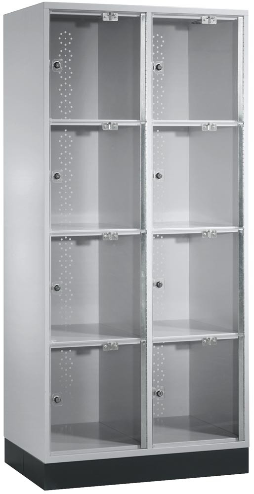 Fächerschrank mit Acrylglastüren, 2x4 Fächer 380 mm, BxTxH 820x500x1750 mm, Schloss, RAL 7035 E1988965
