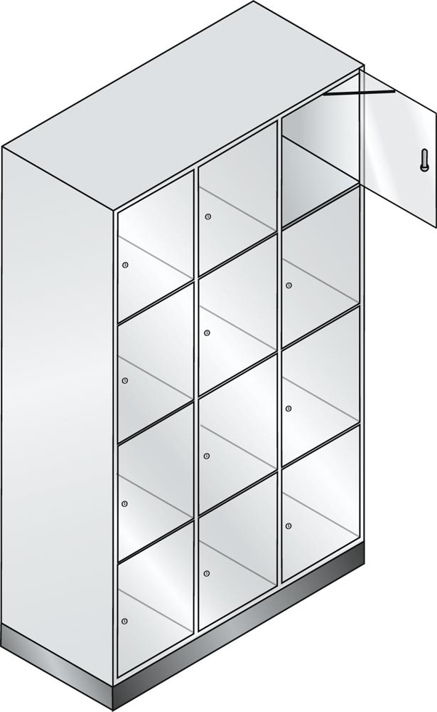 Fächerschrank mit Acrylglastüren, 3x4 Fächer 380 mm, BxTxH 1220x500x1750 mm, Schloss, RAL 7035 E1988968