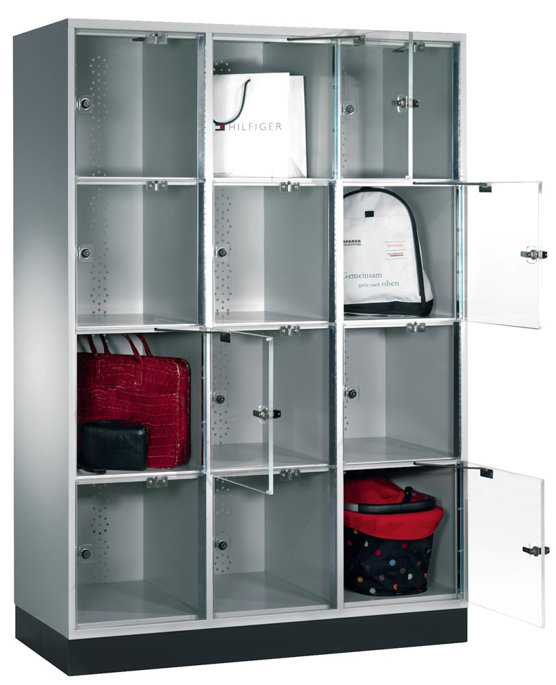 Fächerschrank mit Acrylglastüren, 3x4 Fächer 380 mm, BxTxH 1220x500x1750 mm, Schloss, RAL 7021 E1988969