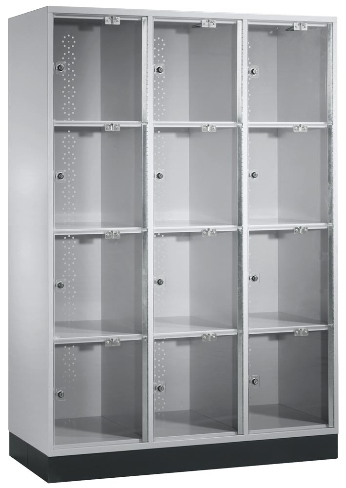 Fächerschrank mit Acrylglastüren, 3x4 Fächer 380 mm, BxTxH 1220x500x1750 mm, Schloss, RAL 7035 E1988968