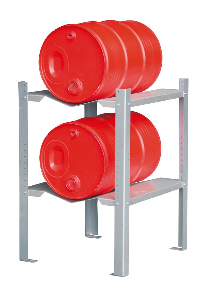 Gebinderegal, verzinkt, Fassauflage für 1x60 l-Fass + 1 Boden für Gebinde, BxTxH 700x600x900 mm E811437