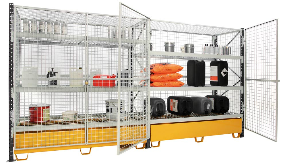 Gefahrstoffregal verschließbar, Anbaufeld, BxTxH 1800x800x2000 mm, 2 Lagerebenen, Rahmen RAL 7024, Traversen RAL 7035 E1982363