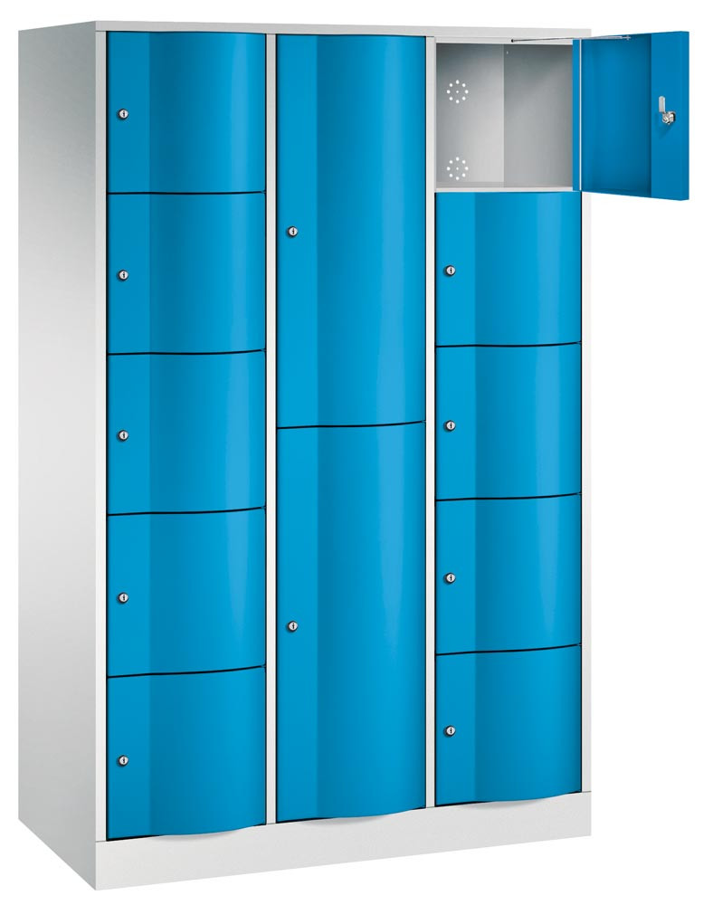 Großraum-Wertfachschrank mit Spezialtüren, 12 Abteile, BxTxH 1150x540x1950 mm, RAL 7035/5012
