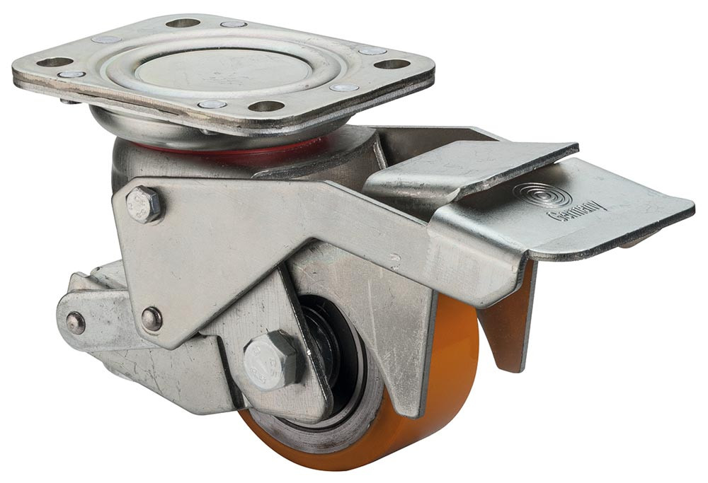 Hebe-Lenkrolle, Polyurethan, Durchm. 80 mm, Nivellierhöhe 115-128 mm, Traglast 400 kg, Kugellager, Schraubplatte E6039924