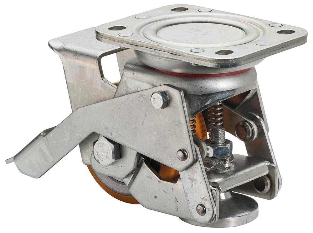 Hebe-Lenkrolle, Polyurethan, Durchm. 75 mm, Nivellierhöhe 112-125 mm, Traglast 350 kg, Kugellager, Schraubplatte
