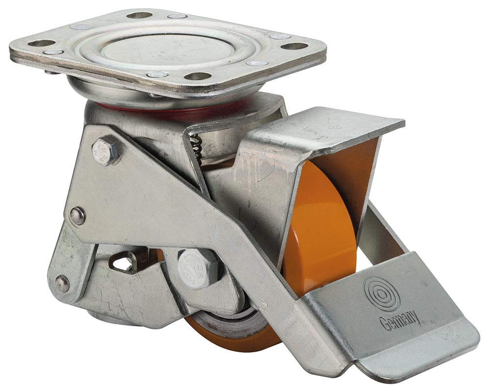Hebe-Lenkrolle, Polyurethan, Durchm. 75 mm, Nivellierhöhe 112-125 mm, Traglast 350 kg, Kugellager, Schraubplatte E6039923