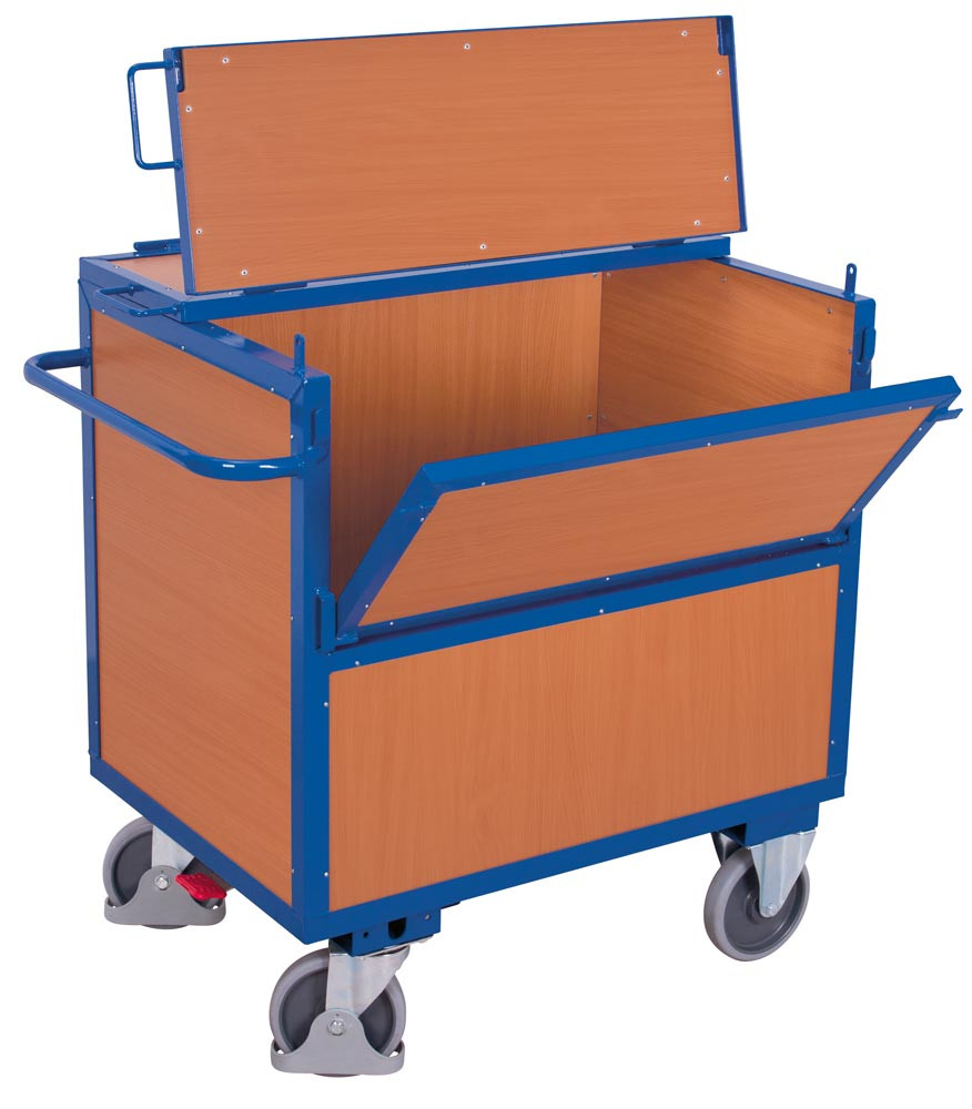 Holzkastenwagen, mit Deckel, Ladefläche LxB 970x670 mm, Außenmaße LxBxH 1130x730x1150 mm, Traglast 500 kg E1320380