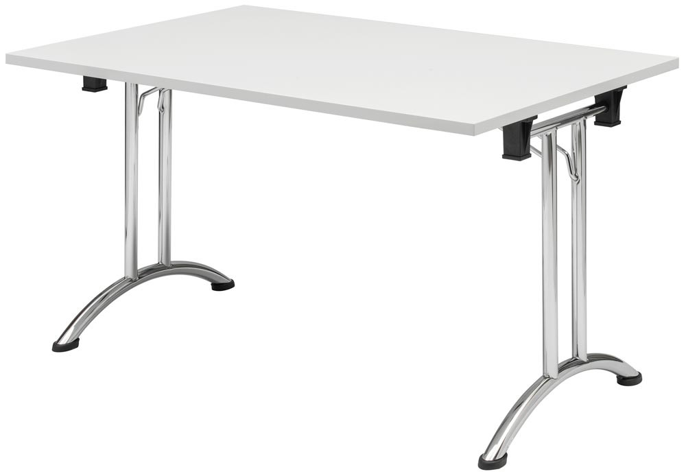 ∙ Klapptische mit 25 mm starker, melaminharzbeschichteter Gütespanplatte ∙ 2 mm ABS-Kante passend zum Dekor ∙ Tischgestell verchromt ∙ Kunststoffdistanzhalter für Stapelung ∙ Kunststoffbodengleiter in schwarz