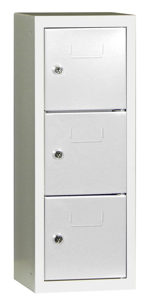 Kleinfachschrank, Modulsystem, Wandbefestigung, BxTxH 225x200x598 mm, 3 Fächer, Türen mit Etikettenrahmen, Schloss, RAL 7035 lichtgrau