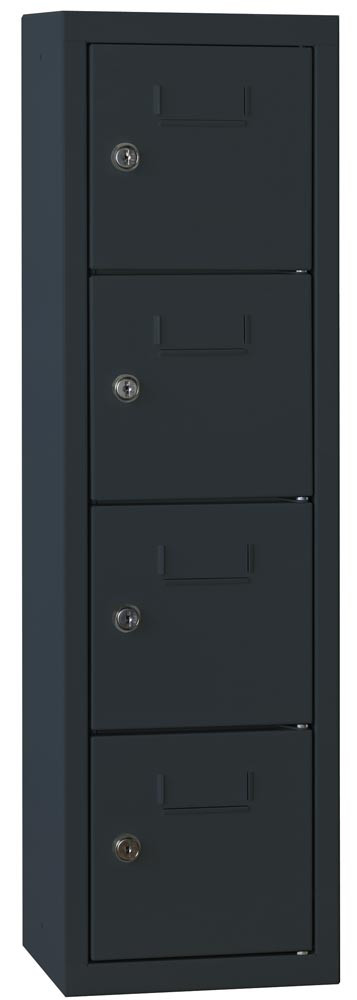 Kleinfachschrank, Modulsystem, Wandbefestigung, BxTxH 225x200x778 mm, 4 Fächer, Türen mit Etikettenrahmen, Schloss, RAL 7016 anthrazit
