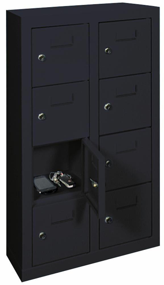 Kleinfachschrank, Wandbefestigung, BxTxH 460x200x815 mm, 2x4 Fächer, Fachbreite 145 mm, Schloss, RAL 7016 anthrazit E1571201