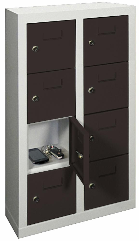 Kleinfachschrank, Wandbefestigung, BxTxH 460x200x815 mm, 2x4 Fächer, Fachbreite 145 mm, Schloss, RAL 7035/7016 lichtgrau/anthrazit E1571202
