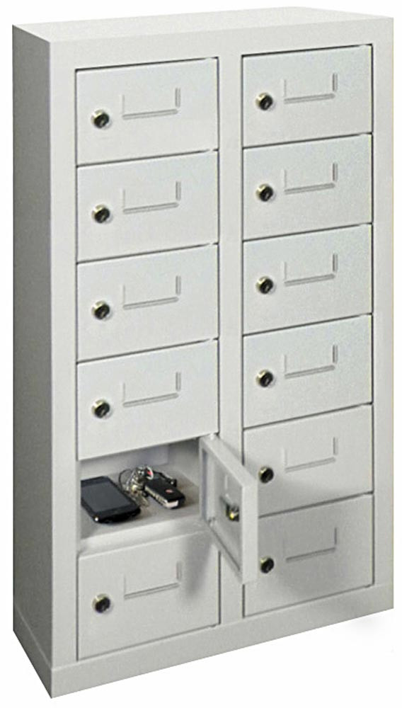 Kleinfachschrank, Wandbefestigung, BxTxH 460x200x815 mm, 2x6 Fächer, Fachbreite 145 mm, Schloss, RAL 7035 lichtgrau