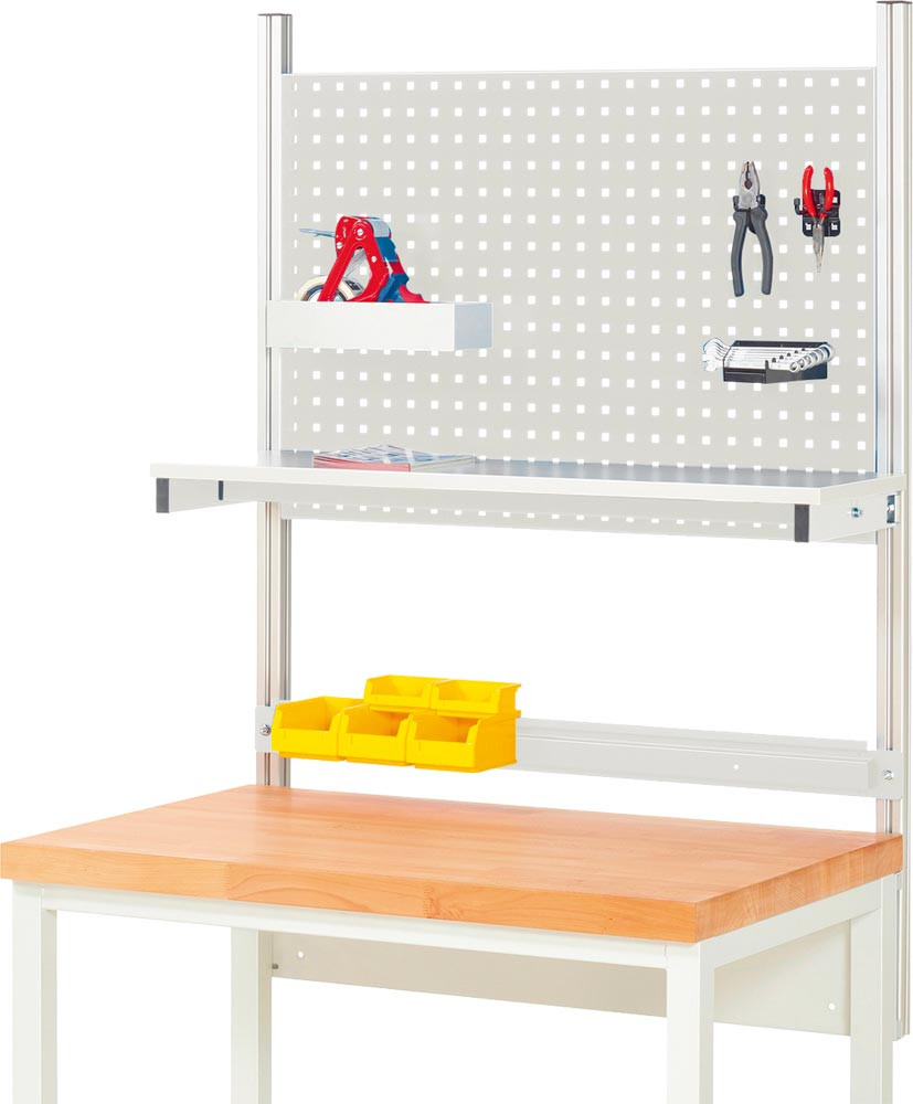 Komplettaufbau für Werkbank B 750 mm mit Etagenbord, Lochplatte H 650 mm, Halteschiene, RAL 7035 E6490821
