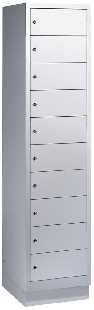 Laptopschrank, BxTxH 420x500x1800 mm, 10 Fächer, mit Sockel, RAL 7035 lichtgrau