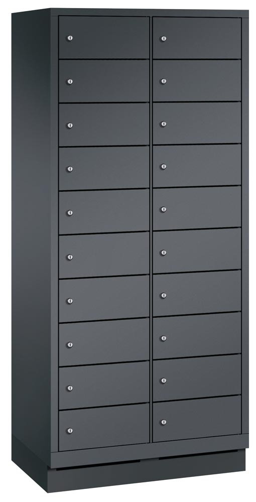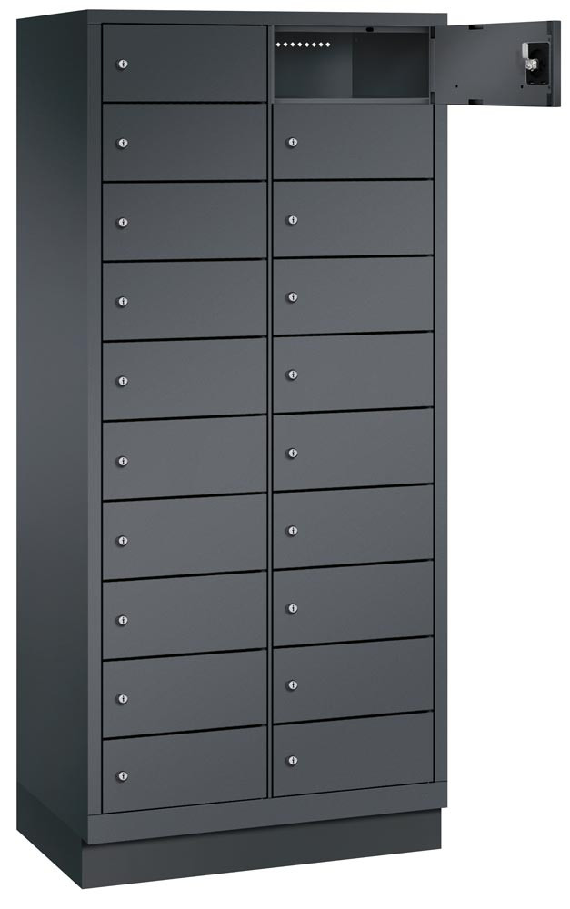 Laptopschrank, BxTxH 810x500x1800 mm, 20 Fächer, mit Sockel, RAL 7021 schwarzgrau