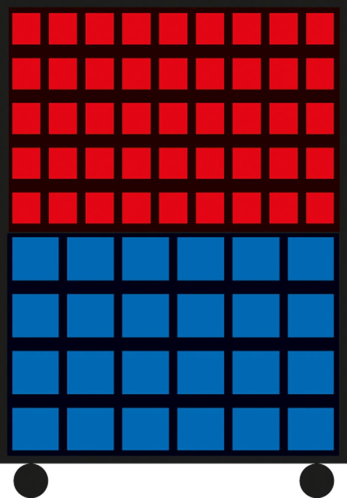 | Anzahl Behälter | 90 x Gr. 5 rot, 48 x Gr. 4 blau Stück |