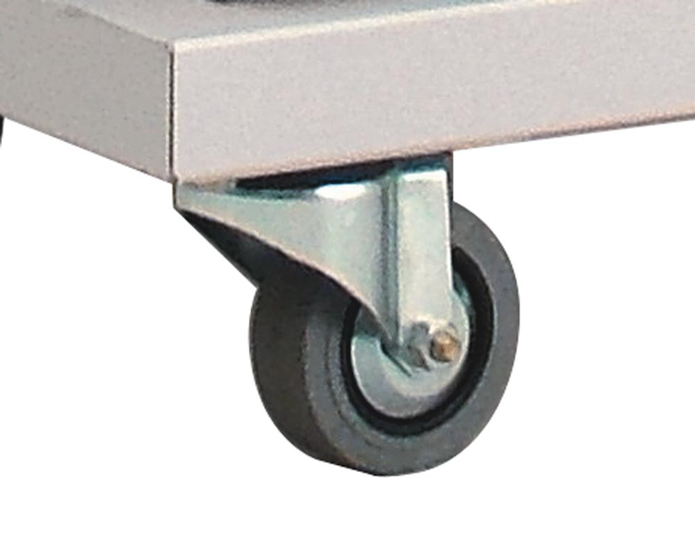 ∙ Fahrbares Teilelager für rationelle Materialstellung in Fertigung und Montage ∙ Ideal für den Einsatz direkt am Arbeitsplatz · Hohes Lagervolumen auf engstem Raum ∙ Stufenloses verstellen der Aufhängeschienen zur flexiblen Änderung der Kastenbestückung · Unterschiedliche Kastengrößen auf mehreren Ebenen · Hochwertige Beschichtung in RAL 7035 lichtgrau · Aufhängeleisten verzinkt · Kippsichere Stahlkonstruktion mit je 2 vollgummibereiften Lenk- und Bockrollen, Durchmesser 100 mm