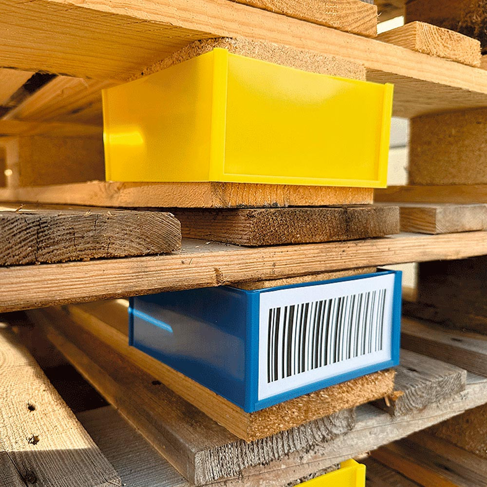 Paletten-ID-Spange, gelb, für den Eckfuß der Palettenschmalseite, BxTxH 113x156x73 mm, VE 25 Stück E6479739