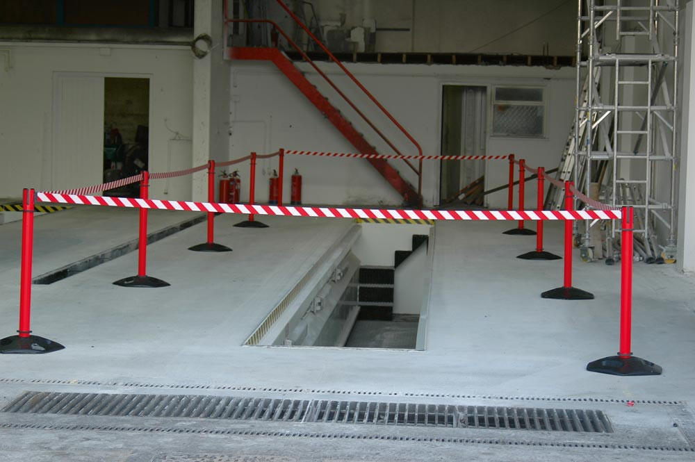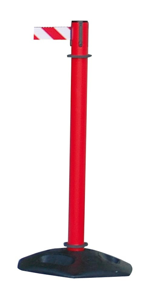 Rollgurtpfosten, für den Außenbereich, Modell Heavy Durty, Pfosten Kunststoff rot, Gurtlänge 3,65 m, Gurtfarbe rot/weiß, VE 2 Stück