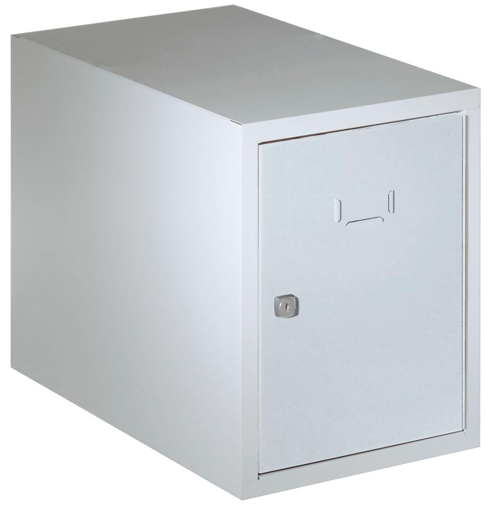 Schließfachwürfel, BxTxH 300x500x380 mm, Tür glatt, Etikettenrahmen, Zylinderschloss, RAL 7035